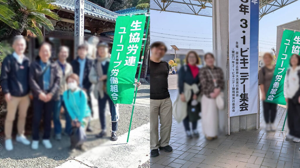 2026年3月1日、静岡県焼津市で行われた3・1ビキニデーに労組員を派遣しました。労組員の派遣については、12月に行った冬カンパで集まった金額に基づき派遣人数を検討したうえで、6名を派遣しました。さらに、労組員の有志2名と事務局としての派遣2名を合わせ総勢10名でのビキニデー参加となりました。今年は当日が日曜日ということもあり、核兵器廃絶を願う約1200人もの人々が焼津市に集結し、核兵器の非人道性や残虐性について訴えながら、核兵器廃絶が達成されるまで取り組みを続けることを確認しました。